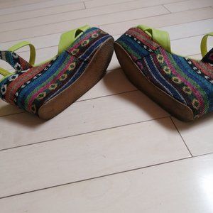 high heels to give you the height you want and also very comfortable. bright colours and make it easy to match clothes. These two colours are the colours for 2022 summer. excellent condition. $15 for 2 pairs, excellent deal!