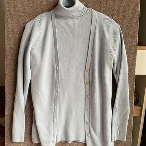 2 pieces for the price of one! Short sleeve turtle neck and matching long sleeve cardigan. Light blue. Versatile pieces to have in you wardrobe. Wear them together or separately to expand your wardrobe.