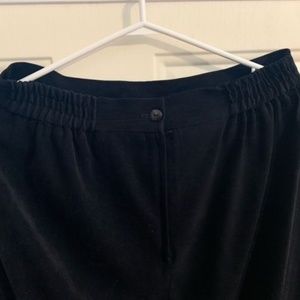 Beautiful vintage set. Rose/red jacket with black skirt. Front slit for style and comfort on skirt, soft elastic waist with back closure for comfortable fit. Faux fur collar finishes the suit, it is detachable if desired. Very nice set.