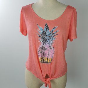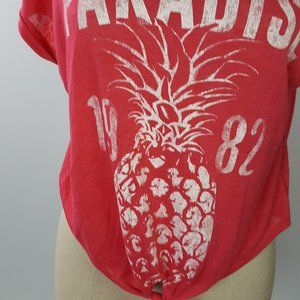 2 pcs PINEAPPLE GRAPHICS CROPPED FRONT KNOT SHIRTS pinkish and reddish