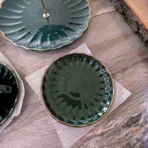 Full afternoon tea set for 2. Real porcelaine lined with gold. Royal green.