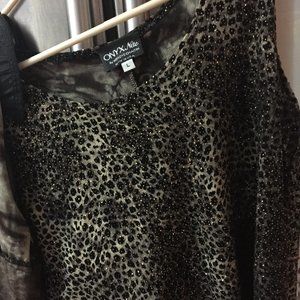 Beige and Black Sequin top set Sleeveless blouse with Matching cardigan Scoop Neck, single button closing Flattering easy fit