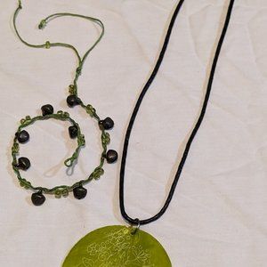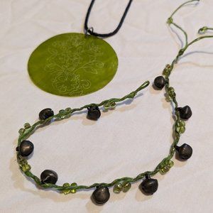 Lucky ankle bracelet with Nepalese bells and glass beads on waxed cotton