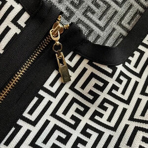 70βs style 2 pices ensemble. Cute, stretchy and heavy material. The zipper on the top is slightly faded. Close to the pants zipper there is a small hole, hard to see even zoomed in.