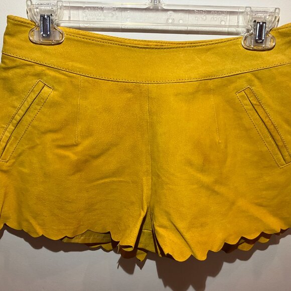 Yellow Scalloped Suede Short, Size 27