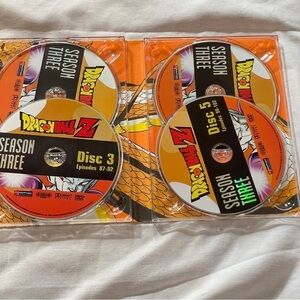 One 2 dvd set of dragon ball z movie and the the full 6 dvd set of season 3 all discs are in perfect shape no scratches