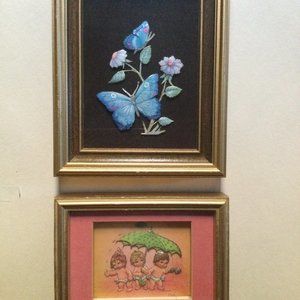 2 small paper tole paper art 3D butterflies and kids wall decor.