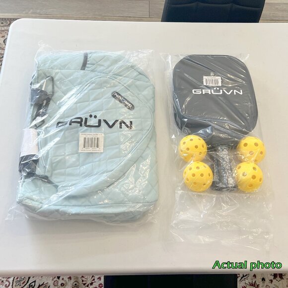 2 x GRUVN Pickleball Gripper-G16 Paddles, 2 Outdoor & 2 Indoor Balls & 1 Totebag