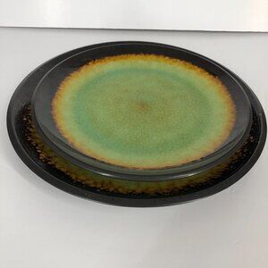 2 x Over and Back Metropolitan Stoneware Crackle Blue Green Brown Plates