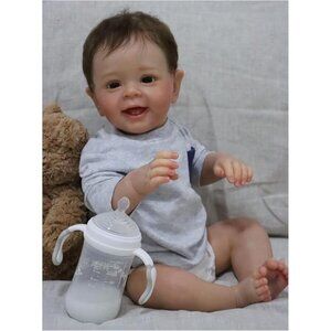 【Material】silicone vinyl head ,3/4 silicone vinyl limbs with stuffed PP cotton body,very soft.The doll limbs can move, can sit and lie down but can't stand ,Can't speak; can not be put into water.