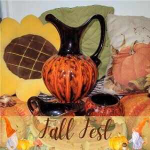 🍂 20% OFF Drip Glaze Pottery Set Pitcher Creamer Sugar Bowl Midcentury Vintage