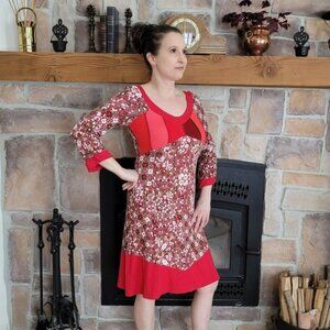 🍂 20% OFF - MYCO ANNA - Patchwork Boho Red Dress
