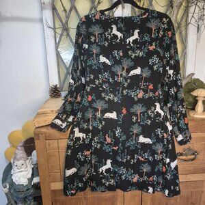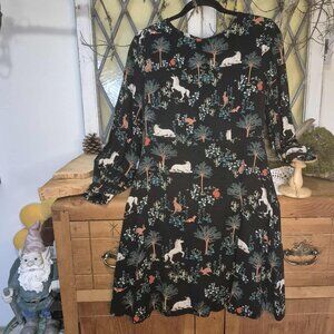 🍂 20% OFF - Magic Forest Long Sleeve Midi Dress Unicorn & Animal Novelty Print