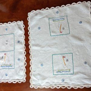 20% OFF Vintage 3-Piece Hand Embroidered Sailboat Doilies – c 1950s