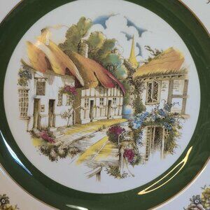 This beautiful Ascot service plate was manifactured in the 1960s by Wood & Sons, from England, in Alpine White Ironstone. It features a classic english country style design with thatched cottages, witch of course are Fairy houses. Great addition for collectors or as a decor peice.