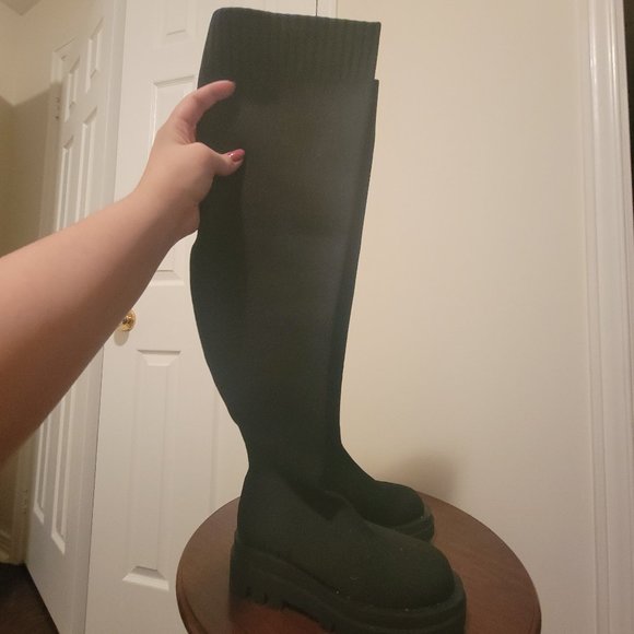 - knee high knit boots - stretchy material - rounded toe box - size 7