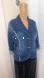 Stylish women's denim jacket with a classic design. Perfect for casual outings. 20 inches from armpit to armpit 21 inches and length. Has nice rounded him on the front of the jacket button down denim jacket with raw edge hand fringe.