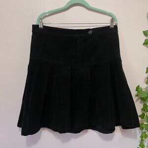 2000s Black Corduroy Pleated Midi Skirt