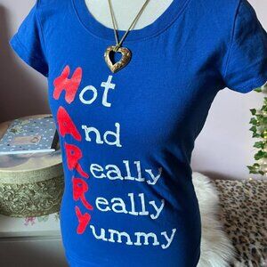 2000s Blue Harry “Hot And Really Really Yummy” Graphic Tee