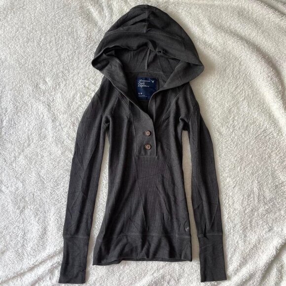 2000s Grey American Eagle Outfitters Hooded Long Sleeve