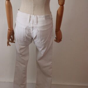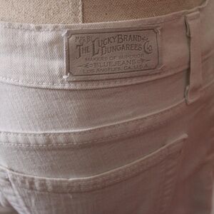 A pair of early 2000's white denim pants, by Lucky Brand Jeans. The condition is excellent, they show minimal wear. The pants are quite low rise and slim cut.