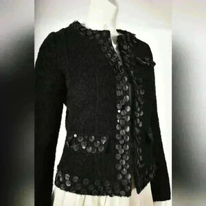 2000s Marc Jacobs Black Persian Lamb Astrakhan Leather Sequin Jacket 4US Small