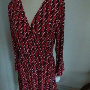 2000's NOS Wrap Style Red Abstract Print Jersey Knit Neiman Marcus Dress