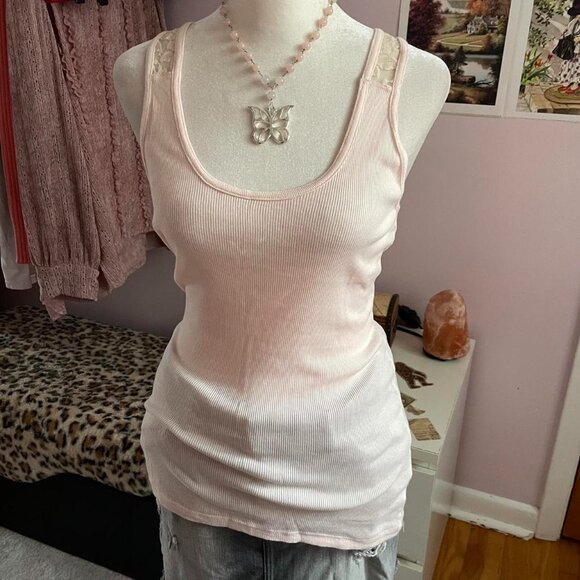 2000s Pink Lace-Back Tank Top