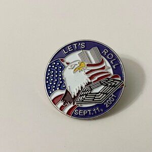 2001 Lets Roll 911 Remembered Lapel Hat Pin US Flag Eagle
