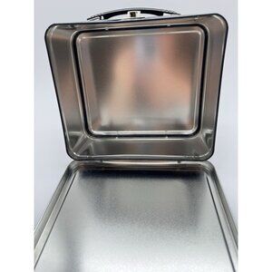 The product is a 2001 Marvel Dynamic Forces Elektra Metal Lunch Box featuring artwork by artist Greg Horn. This collectible lunch box is a limited edition and showcases a unique design inspired by the Marvel Elektra character. It is in good condition for its age with a couple scratches as shown in the photos. It measures 8” long by 7” high and 3.75” deep.