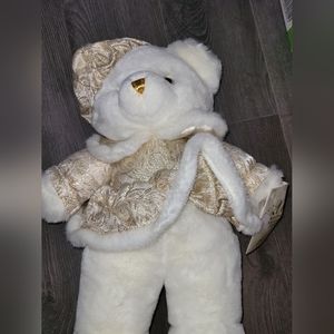 Pair of 2001 Collector Snowflake teddy bears with Gold and White outfits