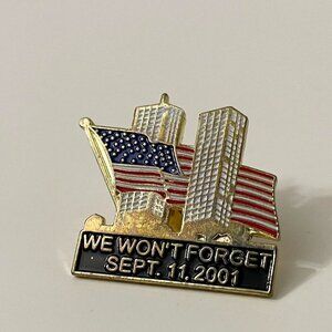2001 We Wont Forget September 11th Commemorative Lapel Pin Twin Towers