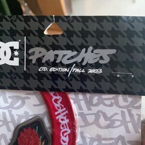 2003 Ltd Edition DC Shoes patches still in packaging. One of the staples popped off and it was redone to secure them in the pack. Ready for the next owner to enjoy and hopefully put them to use. I hung on to these in the hopes of having a kid into skateboarding but he gravitated more to surfing like his dad. Our loss your gain.