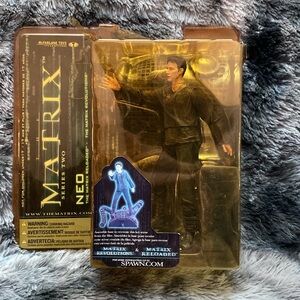 Matrix Series Two Neo action figure in black outfit. Perfect for collectors. The box is in damaged condition but item is still sealed within
