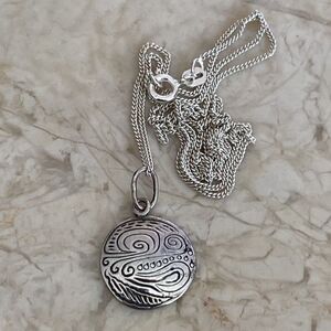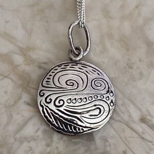 Beautiful vintage handcrafted sterling silver First Nations pendant, signed and marked on back “Sea Bear 2003”. This is a lovely and rare piece hanging from an 18” sterling silver curb chain.