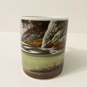 This mug is pre-owned and in used condition. There are some marks and scratches around the rim and on the bottom of the mug. Please see all photos for exact mug.