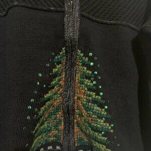 Marisa Christina 2003 Christmas Sweater Zip Cardigan Tree Sequin Holiday M