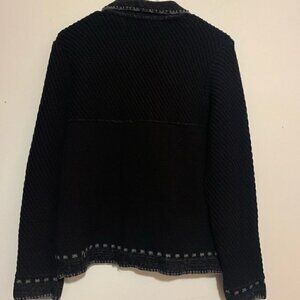Step into retro holiday magic with this Marisa Christina “Christmas Collection 2003” sweater cardigan. Black knit with festive embroidered Christmas tree adorned with shimmering green sequins. Cozy zip-up front with textured knit details and wintery trim. The perfect ugly Christmas sweater (that’s actually cute!) for holiday parties, family photos, or collectors of nostalgic Y2K holiday fashion. Details: • Era: Holiday 2003 (early 2000s) • Brand: Marisa Christina • Size: Medium • Fabric: 54% Acrylic, 44% Cotton, 2% Wool • Made in Hong Kong • Condition: Vintage pre-owned, good shape, minor normal wear. A collectible holiday classic that brings cozy nostalgia and festive sparkle.