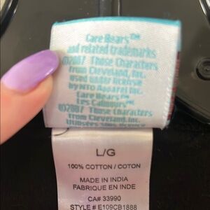 2007 Care Bears Black Tee with Blue Stripes and Bear Design