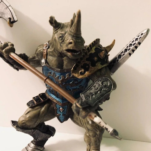 2007 Papo Fantasy Mutant Rhino Man Warrior Knight 4 Inch Tall Figure Toy