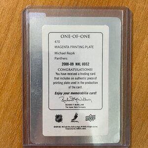 2008-09 Upper Deck Printing Plates Magenta #470 Michal Repik YG #'d 1/1 Florida Panthers. Not currently Beckett priced due to scarcity.