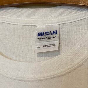 Gildan shirt has date January 20th 2009 on it, a photo of Barack Obama, the words “We Made History”, and the seal of the president of the United States on it.