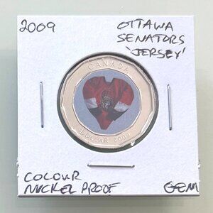 These 2009 Special Edition 6 x Nickel Proof Canadian NHL Team Jersey Loons are a must-have for any coin collector or hockey fan. The set includes six uncirculated $1 nickel proof coins, each featuring a different Team Jersey from the 2009 Canadian NHL Season. 1st coin features the Montreal Canadiens Jersey, the 2nd the Toronto Maple Leafs, the 3rd the Ottawa Senators, the 4th the Edmonton Oilers, the 5th the Calgary Flames and the 6th the Vancouver Canucks!