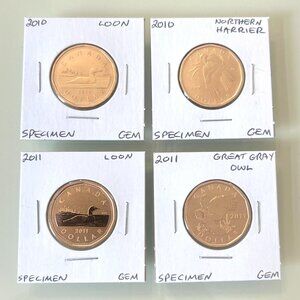 2010, 2010, 2011 and 2011 Canada Special Edition Specimen $1 Dollar Loonies!