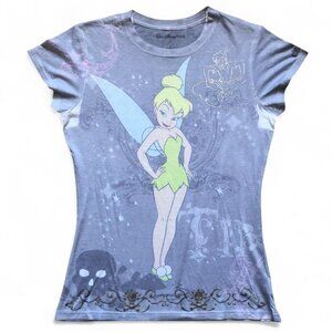 ❀˖° vintage early 2010s official DISNEY PARKS TINKERBELL PETER PAN aop all over print skulls filigree fairycore grunge graphic t-shirt⋆.ೃ࿔*:・
