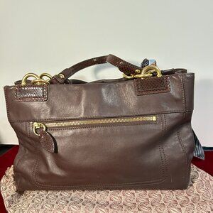 This 2011 Coach Penelope Satchel (F16531) is serving timeless sophistication with buttery brown leather, snakeskin-embossed details, and gold-tone hardware. A structured yet slouchy design makes it effortlessly chic for work, weekend brunch, or jet-setting in style.