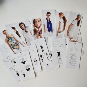 Hermes, cartes à nouer, knotting cards, scarf styling, scarf tying, knot, carré, silk scarf, silk square, headscarf, neckerchief, foulard, turban, bandeau, scarves, wrap, techniques, pirate knot, scarf belt, Twilly bracelet, collectible, Gavroche, tied bandeau-style, vintage hermès, parisian chic, french, luxury, timeless, elegant, chic, fun, retro, fashion accessory, boxed set, gift, holiday gift, christmas gift, hostess gift, stocking stuffer, made in france, iconic, Christmas stocking