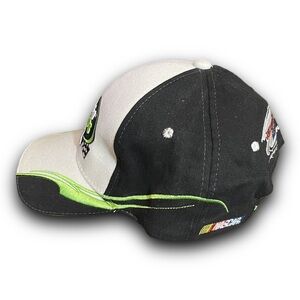 Celebrate the 2011 NASCAR Sprint Series with this officially licensed Richmond Speedway Pistachios cap, showcasing the first race after 9/11, with the date on the back strap of the hat. Featuring the iconic Nascar brand, this multi-color black and lime green cap is a must-have for fans of auto racing. All embroidered logos. Made for men with a one size fits all design, this cap is a unique piece of fan apparel that captures the spirit of the sport. Good preowned condition, no holes or stains.