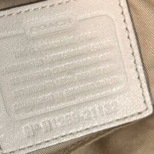 Step into effortless elegance with this Coach 2012 Molly Convertible Satchel—a stunning mix of timeless sophistication and bold, curated styling. Made from buttery ivory leather with silver-tone hardware, this bag is structured yet slouchy, making it the perfect blend of function and fashion.