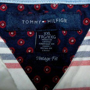 2012 Tommy Hilfiger Mens XXL White Faded Red Blue Striped Button Front Shirt